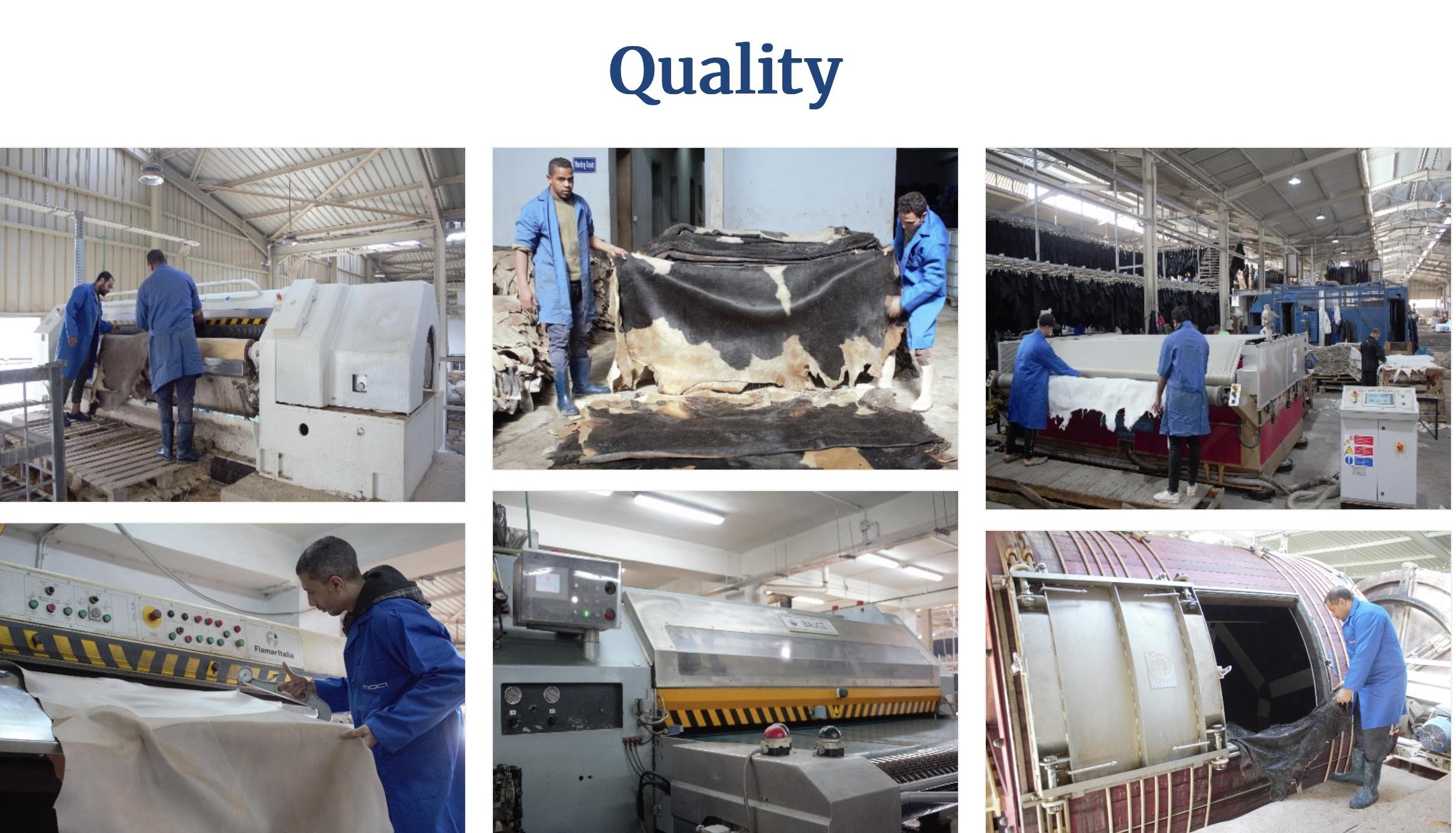 Ell Gonih Tannery is one of Egypt’s leading tanneries, specialized in producing high-quality cow and buffalo leather in crust and finished forms. With modern tanning technologies imported from Italy and Spain, the factory delivers durable full-grain, lining, and suede leathers for export markets. Their operation in Robbiki Leather City enables high volume capacity with strict international quality standards.
