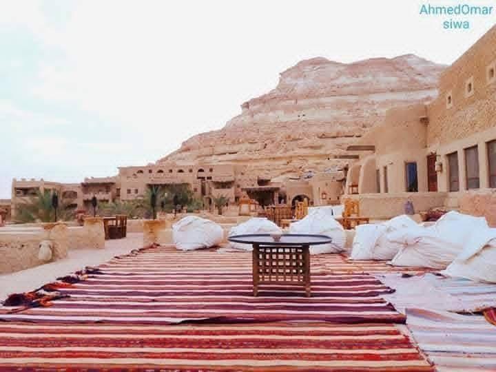One of the most unique eco-hotels in Egypt, located in Siwa Oasis. Built with traditional Siwan materials, without electricity, AC, or fans. Solar energy is used only for mobile charging. Owned by a Moroccan entrepreneur, serving authentic Moroccan cuisine.