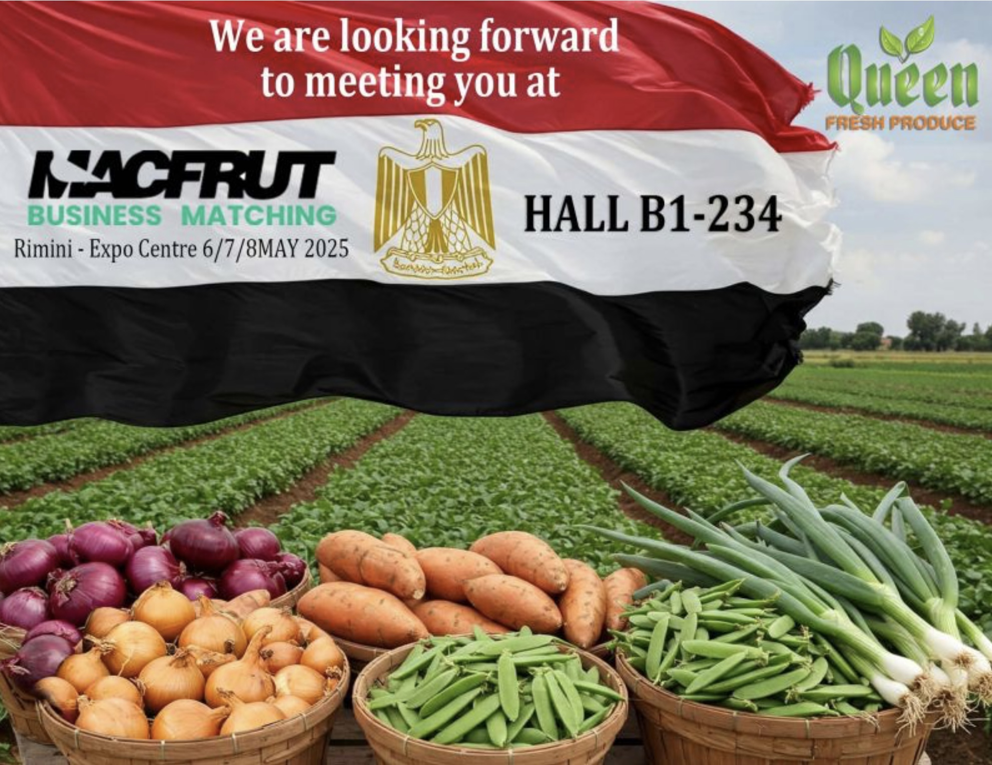 Queen Fresh Produce is a premium Egyptian exporter of fresh fruits and vegetables, specializing in red & golden onions , garlic , sweet potatoes , pomegranates , and grapes . With advanced farms and post-harvest facilities located in Egypt’s most fertile agricultural regions, the company ensures GlobalG.A.P , BRC , and SEDEX certified supply chains. Queen Fresh serves