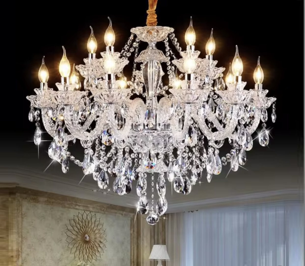 • Handcrafted using high-purity Asfour crystal with intricate detailing and elegant arms. Ideal for palaces, villas, luxury hotels, and premium venues. Adds a regal touch to any space.