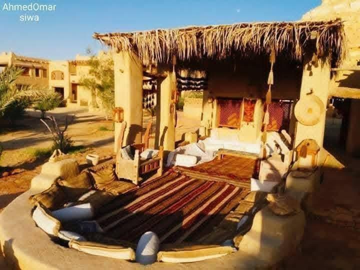 One of the most unique eco-hotels in Egypt, located in Siwa Oasis. Built with traditional Siwan materials, without electricity, AC, or fans. Solar energy is used only for mobile charging. Owned by a Moroccan entrepreneur, serving authentic Moroccan cuisine.