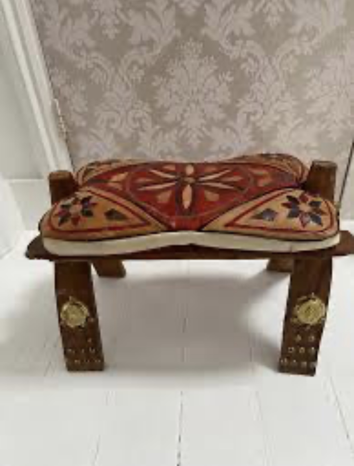 Add a touch of heritage to your space with this handcrafted Egyptian pouf, made from solid wood and premium genuine leather. Featuring intricate detailing and ethnic patterns, each piece is a unique expression of artisanal design. The soft cushion is perfect for casual seating, a footrest, or as a cultural decor statement. Ideal for living rooms, entryways, or boutique lounges seeking warmth and story-rich pieces.